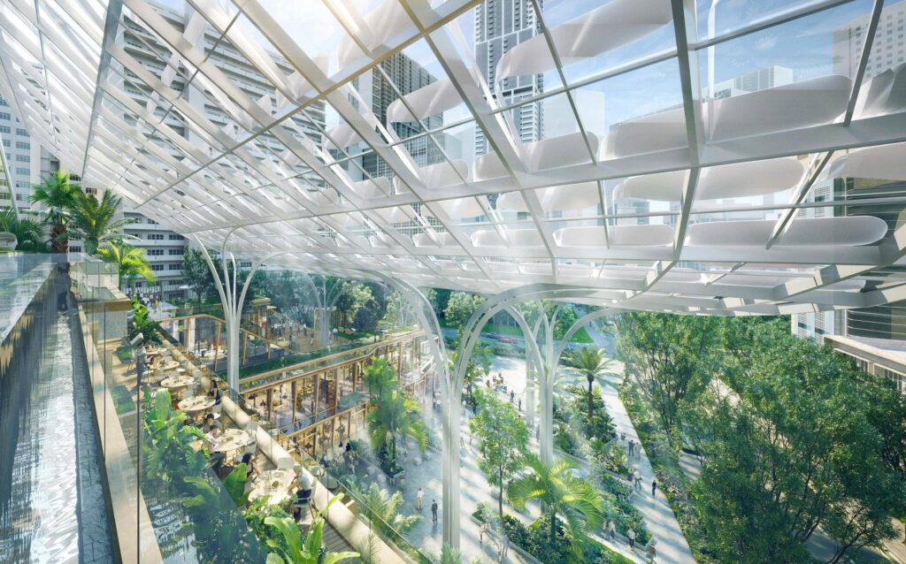 • Dynamika płynów dla naturalnego chłodzenia. NBBJ projektuje budynki z wentylacją krzyżową i kominami solarnymi — rozwiązaniami, które kierują naturalny przepływ powietrza, wciągając chłód i wypychając ciepło, bez uzależnienia od klimatyzacji. Sztandarowy przykład: terminal promowy w Seattle, gdzie zastosowanie wentylacji poprzecznej pozwoliło całkowicie wyeliminować system chłodzenia mechanicznego. Z kolei w singapurskim wieżowcu Keppel South Central specjalna podwójna fasada z panelami fotowoltaicznymi redukuje nagrzewanie budynku, przekładając się na oszczędność energii przekraczającą 40% w skali roku.
